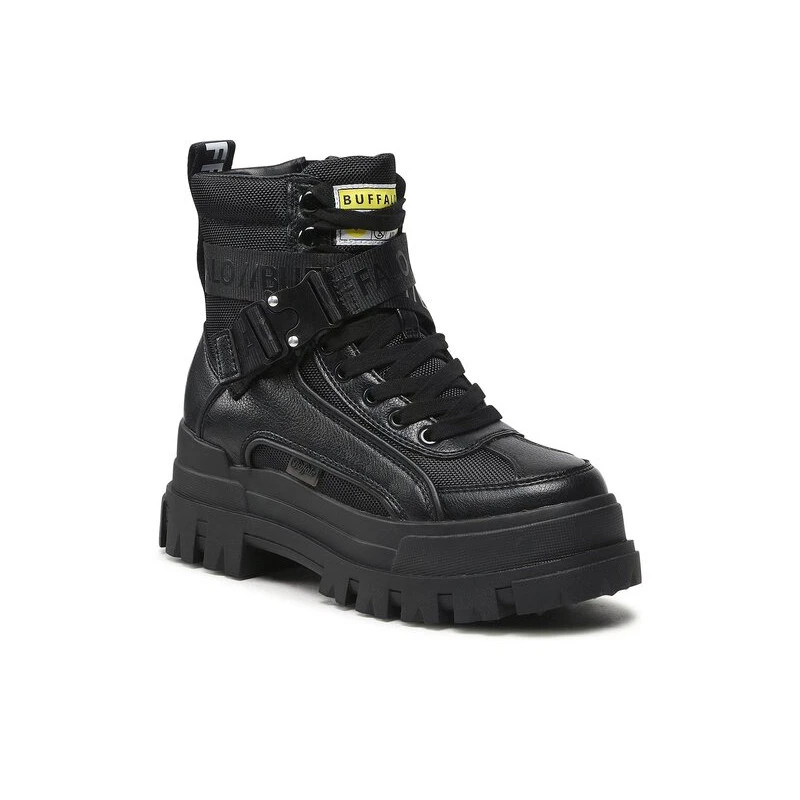 Buffalo London est créé par Michael Conradi. C’est lors d’un voyage qu’il découvrit ce style de chaussure et en devient fan. La marque distribue dans les années 80 essentiellement sur le marché Allemand mais ne tarde pas à envahir les marchés internationaux (à partir de 1984). Buffalo et son emblématique semelle « nuage » deviennent un incontournable des années 90. Porté par de nombreuses idoles des jeunes, Madonna, N’Sync ou encore les Spices Girl. Le cartons ne pouvait que se faire attendre. » Mon pied ce héros » porte Buffalo !