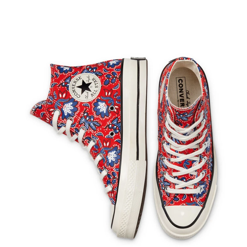 En 1917, dans le Massachusetts aux USA, Converse adapte ses modèles et créer la légendaire ALL STAR. Basket en toile brune, à tige haute, semelle à bout caoutchouté et laçage sous œillets. La chaussure qui révolutionne le jeu des basketteurs grâce à sa bande autour de la semelle pour une meilleure traction, et au rajout d’une pièce autour de la cheville assurant sa protection. C’est Charles Chuck Taylor, le premier-phare du basket-ball qui, séduit par la marque l’a rendra populaire en 1921. La signature du sportif s’ajoute au patch étoilé des authentiques ALL STAR ; la « Chuck Taylor » est née. Converse décline son modèle purement sport en modèles d’usage mixte. Dans les années 50, on la voit aussi bien sur le campus de Stanford qu’aux pieds des ouvriers de la General Motors. Depuis sa création, plus de 700 millions de ALL STARS « Chuck Taylor » ont été vendues dans le monde. « Mon pied, ce Héros ! » porte la CHUCK TAYLOR !