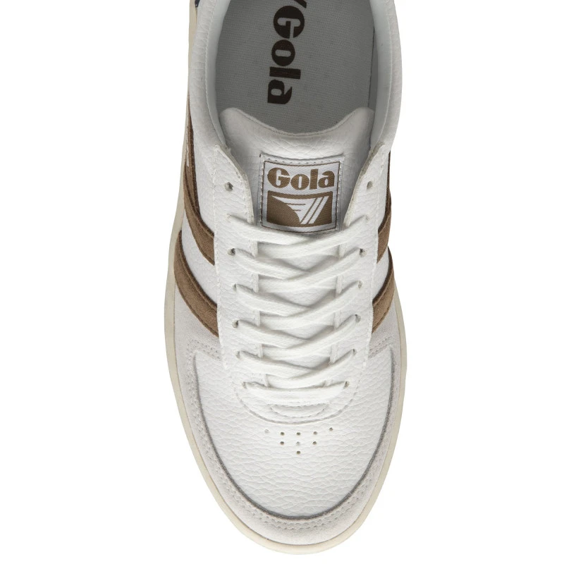 Créée en 1905 à Leicester au Royaume Uni, Gola est une marque principalement connue pour ses chaussures de sport. La légende raconte que la marque doit son nom à l’anagramme du mot « Goal » (qui signifie « but » en anglais). Gola a toujours su s’adapter au fil du temps jusqu’à lancer une collection 100% Vegan en 2019 qui a été certifiée par le label Vegan Society. Ce modèle Grandslam est un classique de la marque anglaise ! Avec son style tout droit venu des années 90 et son upper en cuir premium, ce modèle deviendra sans aucun doute un indispensable de votre dressing que vous pourrez porter au quotidien avec un style habillé ou décontracté. « Mon pied, ce Héros ! » porte la Gola Grandslam !