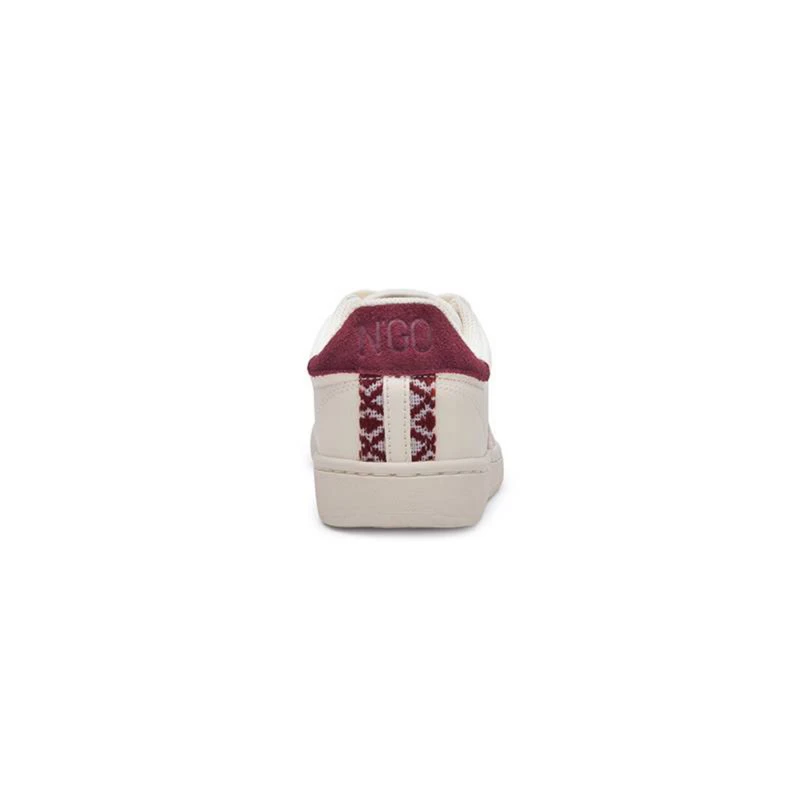 Voici le modèle Da Lat de N’Go ! Modèle aux motifs de couleur Bordeaux, tissé à la main par des artisanes vietnamiennes. Son look un brin rétro vous séduira dans les moindres détails : cuir de couleur beige, tanné sans chrome, touches de suède et semelle renforcée ! Vous vous sentirez comme dans des chaussons. « Mon pied, ce héros! » porte N’Go.