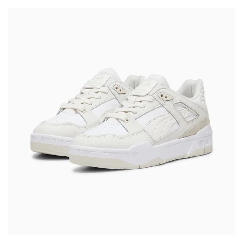 Puma fait partie des équipementiers sportifs historiques qui rayonnent sur un marché des sneakers toujours aussi attractif. Les débuts de Puma sont étroitement liés à ceux d’Adidas dans la mesure où les fondateurs des deux marques ont d’abord collaboré dans le cadre d’une entreprise familiale : Appelée « Gebrüder Dassler Schuhfabrik », ou « fabrique de chaussures des frères Dassler ». C’est suite à un désaccord post-seconde guerre mondiale que les deux frères fondateurs, Adolf et Rudolf Dassler, prennent des chemins opposés. Ce dernier décide de créer sa propre marque Puma dans la même ville que son frère qui développe Adidas. La marque Puma fait donc ses débuts en 1948 à Herzogenaurach, en Allemagne. Rudolf Dassler lance dans la foulée son tout premier modèle de chaussures à crampons : l’ATOM, un succès auprès de nombreux sportifs qui choisirent les produits de la marque. Si une grande page de l’histoire de PUMA s’est écrite dans le football, les sneakers que l’on connaît tous aujourd’hui sont davantage inspirées des univers de l’athlétisme et du basketball. Classique parmi les classiques, la Puma Suede a tout de suite séduit grâce à sa forme atypique et l’originalité de sa tige composée comme son nom l’indique de suède. Ces caractéristiques intemporelles ont permis au modèle lancé en 1968 de traverser les âges pour continuer de séduire les nostalgiques et conquérir la nouvelle génération. Au fil du temps, PUMA s’est imposé parmi les équipementiers les plus influents de la planète avec ses produits lifestyle et sportifs. La marque s’est rapidement fait une place au sein de la culture hip-hop et plus précisément celle du breakdancing. Puma est à l’origine de modèles iconiques et intemporels qui ont traversé les époques : la Clyde, la Suede, la State, la Puma Becker, la Puma Becker Ace, la Roma. Aujourd’hui, la marque continue de développer des silhouettes comme la Puma RS-X, qui connaît un très grand succès.